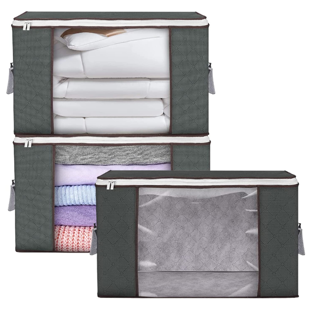 3 Pieces Large Capacity Sized Bags, Clothes Storage Bag Organizers, Foldable, Durable and Space Saver with See-Through Window and Carry Handles