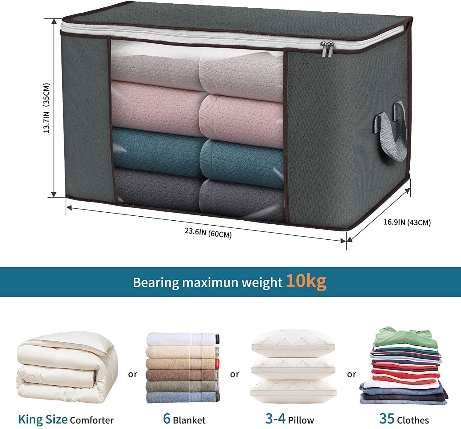 • Each storage bag measures 60 x 43 x 35 cm / 23.6 x 16.9 x 13.7 in and has a large capacity of 90L – It is roomy for your quilt, blanket, pillow, stuffed animal, jacket or other clothing.