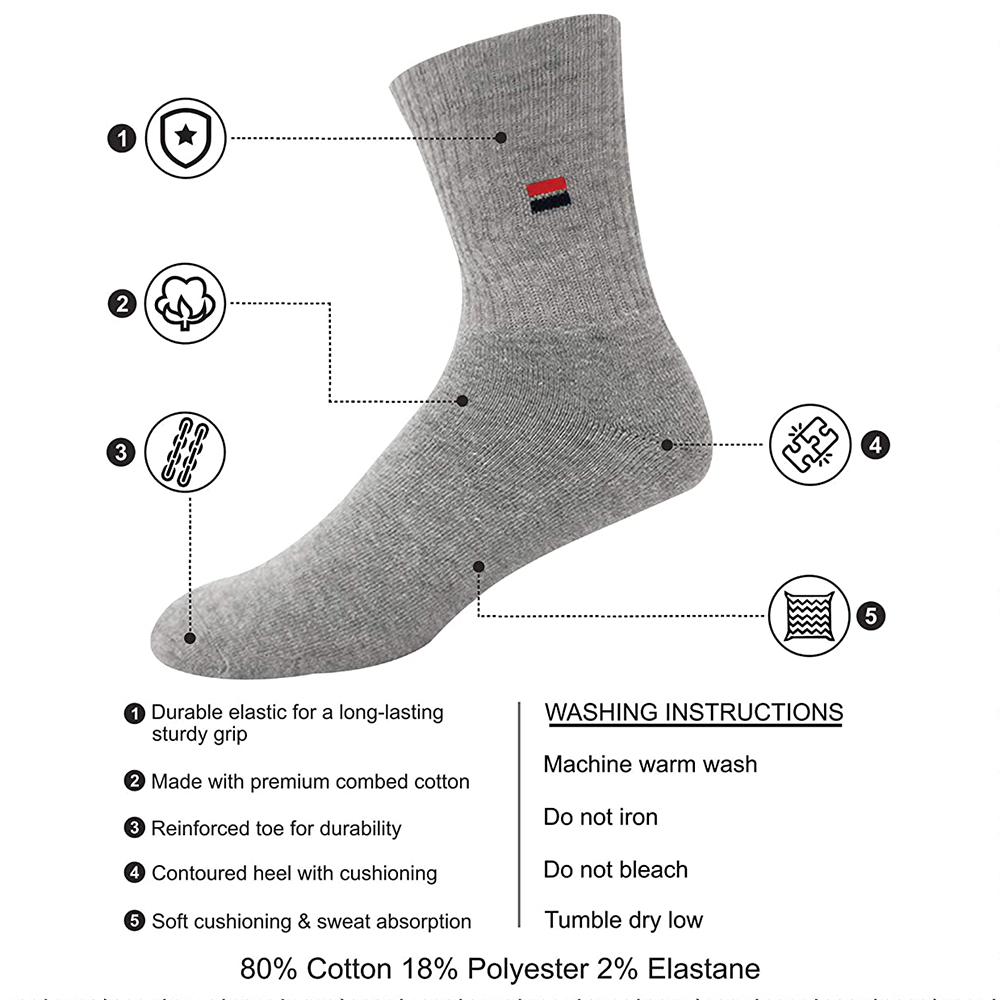- Content: Includes 3 Pairs of Sports Cushion Socks.