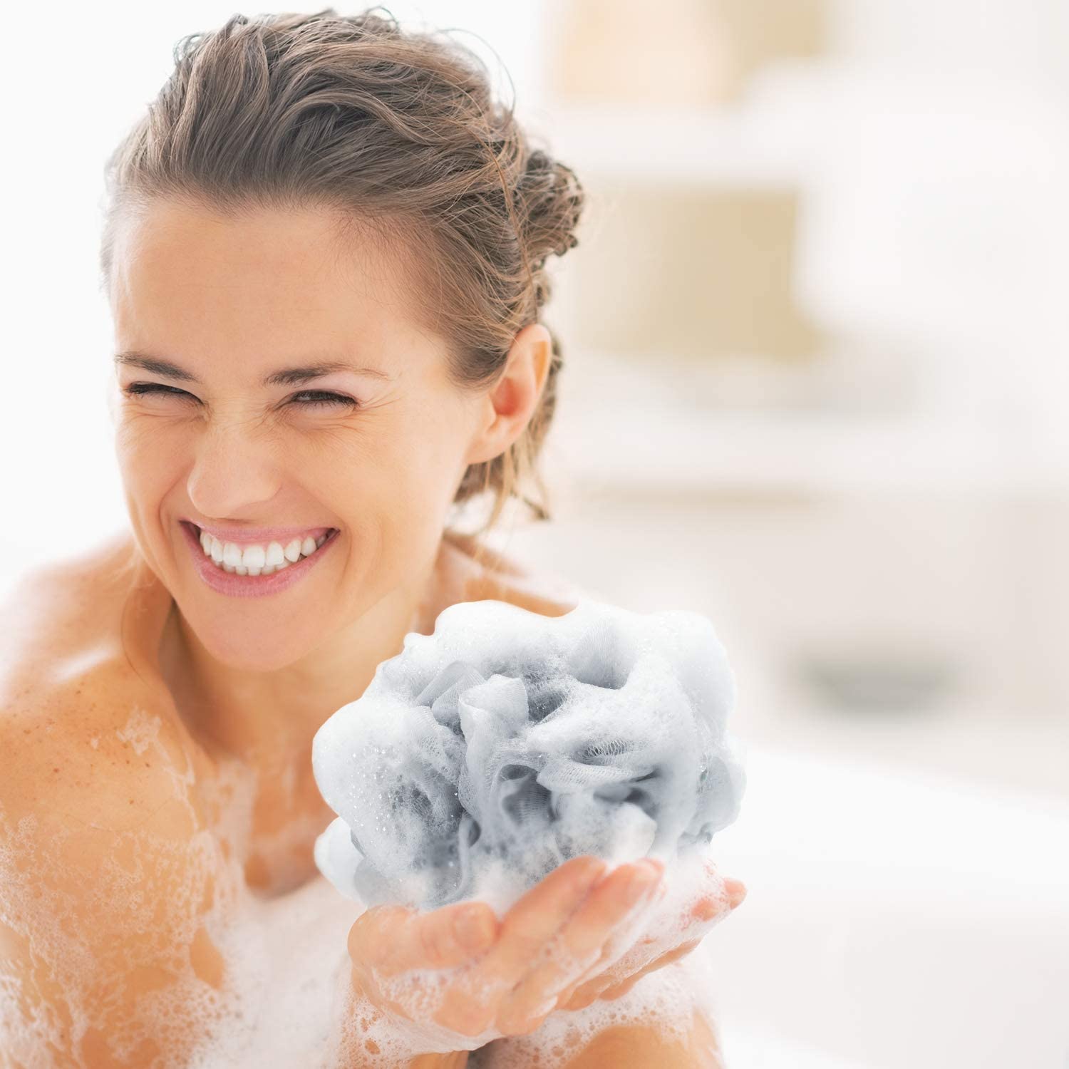- Materials create Lathers and enjoy your shower time. Our imported premium loofah material not only presented in beautiful colour as well as designed but also create great lather to clean your body softly and well. Dermatologist Recommended:Exfoliate, Cleanse, Soothe Skin with Care Body Wash soap/shower gel when lathering